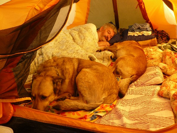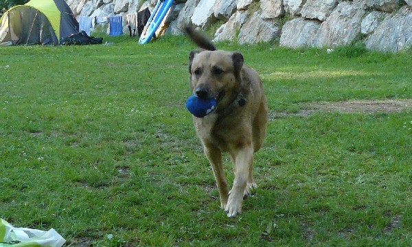 Pole biwakowe przy jeziorze Buková. Ruter ma nowego znajomego.