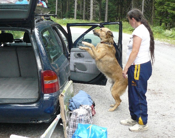 Poranek. Psiaki gotowe do wyjazdu, ale najpierw musimy się spakowac.