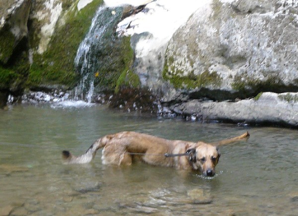 W połowie drogi malutki staw pod wodospadem. Ruter studzi swoje nerwy...