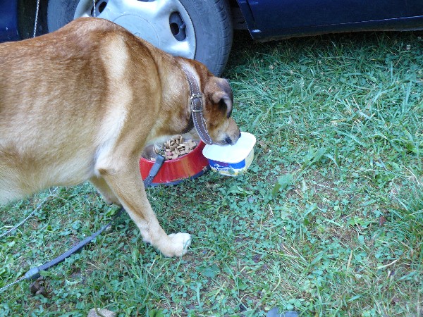 Z naszego wspaniałego ostatniego śniadania też coś psiakom skapnie :)