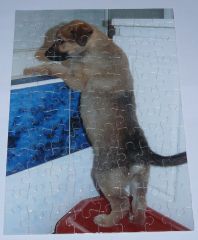 Fotopuzzle Rutera (Pod wersalką) Drugie fotopuzzle ze zdjęciem Rutera powstały siłą rozpędu. Postanowiłem zrobić układankę także z moim ulubionym zdjęciem Rutera. Niestety, mam ich wiele, dlatego wybór był trudny. Ostatecznie zdecydowałem się właśnie na to ukazujące go w lutym 2008 spoglądającego wprost w obiektyw spod wersalki.