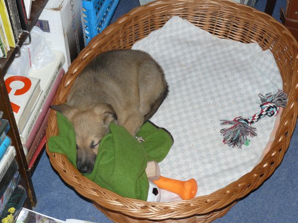 Koszyk wiklinowy to pierwsze legowisko Rutera. Anka kupiła go dla Rutera zaraz na drugi dzień po przygarnięciu psa. Już po kilku dniach Ruter pokazał, że koszyk jest znakomitym narzędziem do ostrzenia zębów. Szybko się okazało, że koszyk nie wytrzyma zbyt długo. Dziś koszyk służy Ruterowi za matę na balkonie. Jednak dalej ma tendencje do zanikania kawałek po kawałku... :)