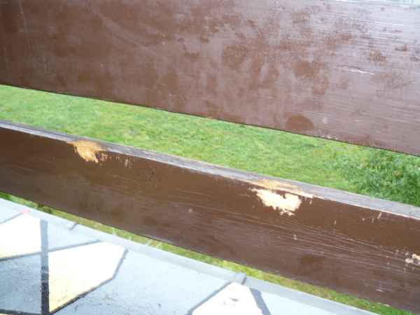 Dwa miejsca najczęstszego obgryzania poręczy balkonowej.