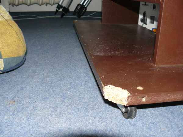 Ten niewielki stolik na kółkach od samego początku budził pożądanie u Rutera. Częste wylegiwanie się w pobliżu mojej wersalki nie służył więc także stolikowi. Już w pierwszych dniach pobytu Rutera w naszym domu zakupiłem specjalny płyn, który ponoć zniechęca psy do brania przedmiotu nim posmarowanego do pyska (jakaś gorycz). Jednak w przypadku Rutera płyn ten albo w ogóle nie działał, albo działał odwrotnie. W rezultacie wszystkie cztery narożniki tego stolika zostały przez Rutera "zaokrąglone".
